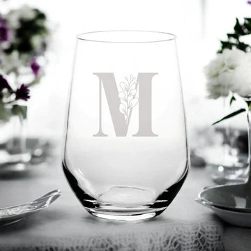 Engraved Stemless Wine Glass - Botanicals Monogram