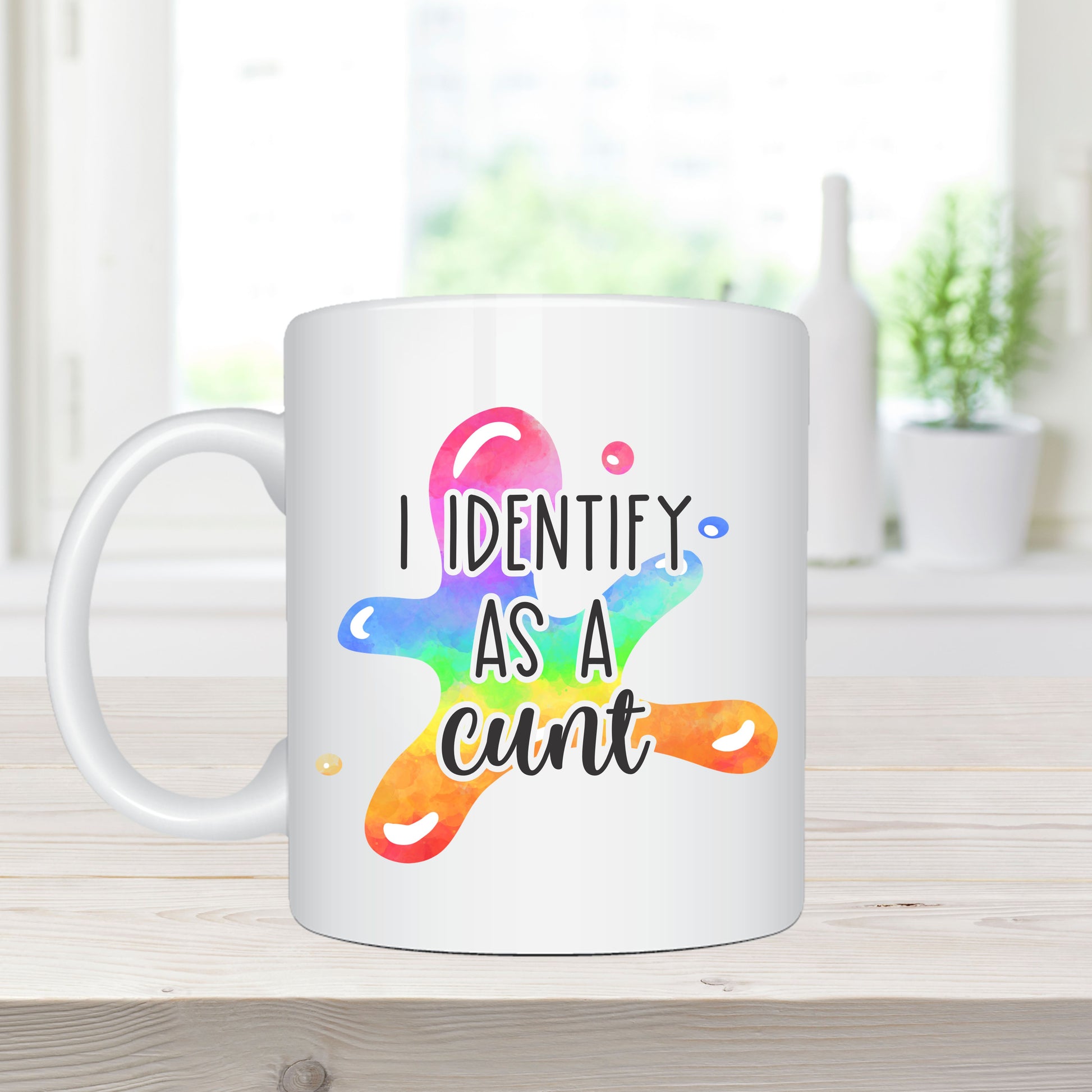 Enjoy your favourite brew with a mug that brings personality to every sip. Our 11oz (325ml) sublimation-printed ceramic mugs feature the quote: “I identify as a cunt”, professionally printed for a crisp, vibrant, and long-lasting finish.