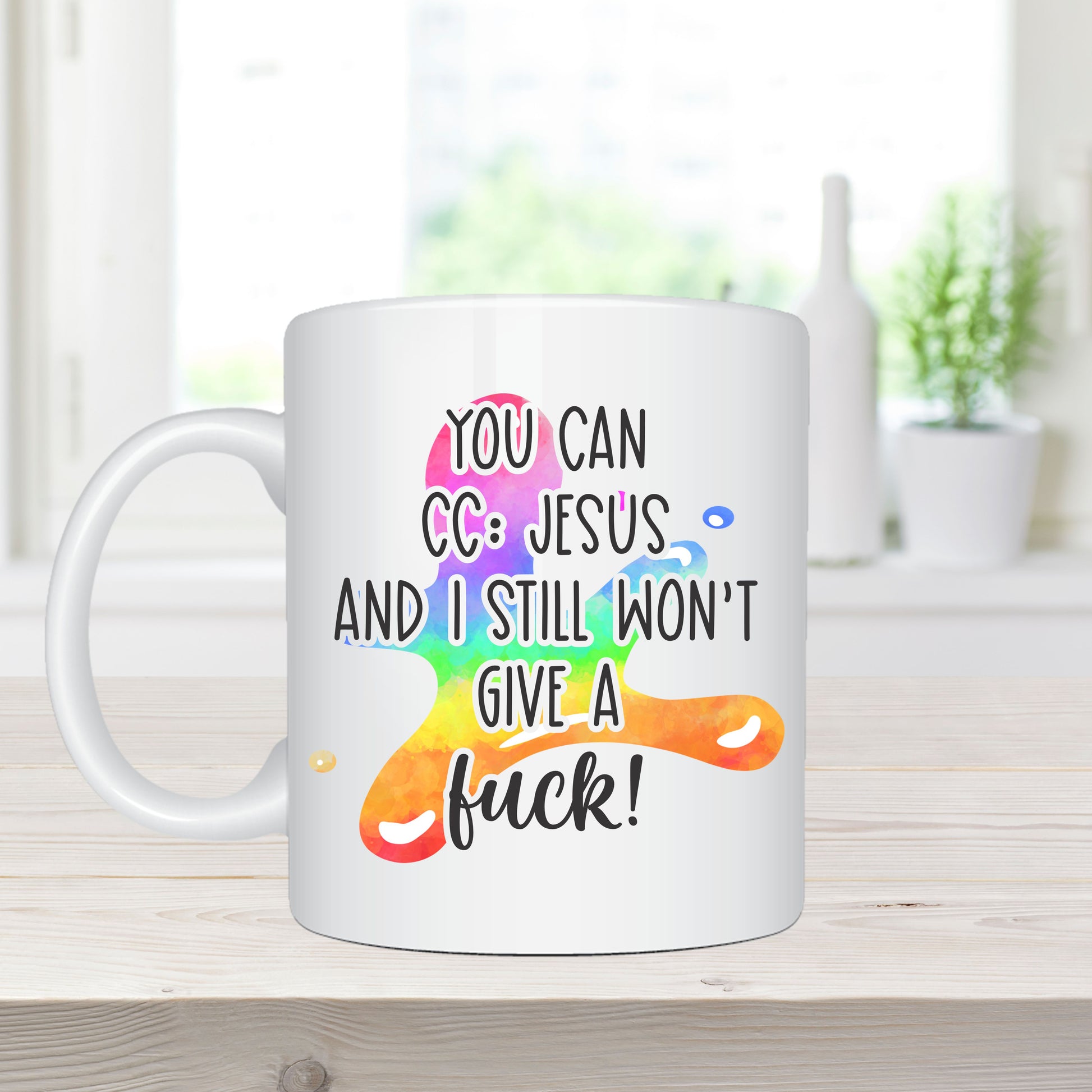 Enjoy your favourite brew with a mug that brings personality to every sip. Our 11oz (325ml) sublimation-printed ceramic mugs feature the quote: “You can CC Jesus and I Still Won't Give a Fuck”, professionally printed for a crisp, vibrant, and long-lasting finish.
