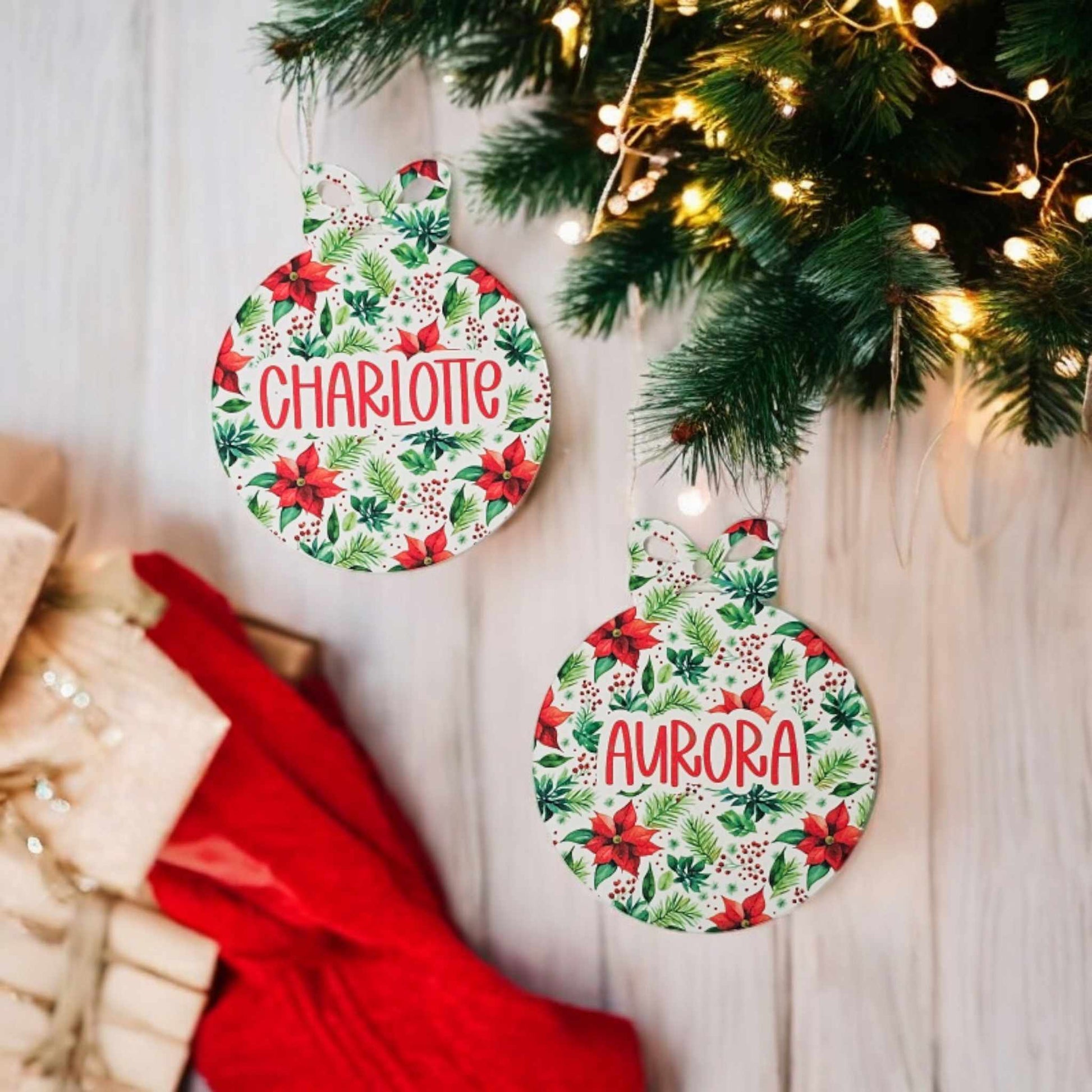 3.6" x 3" Acrylic Bow Bauble with Christmas Poinsettia Print | UV Printed | 3mm Thick