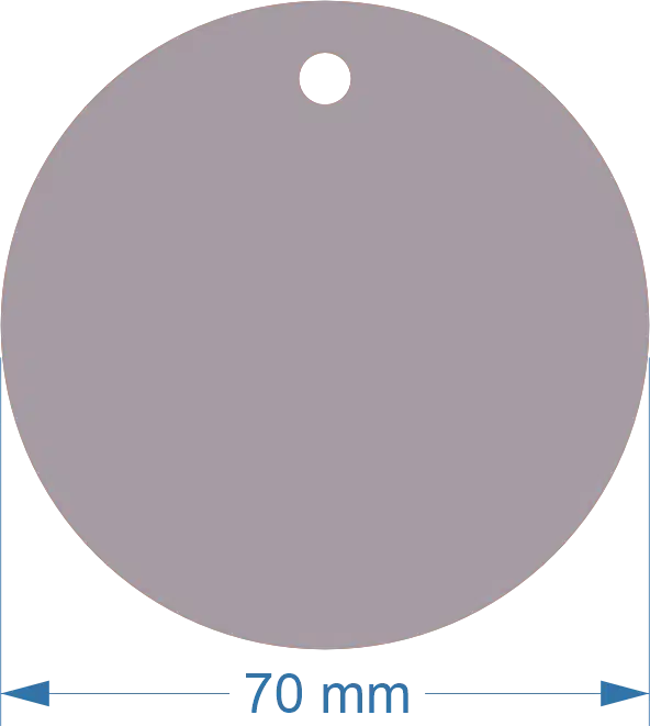 Laser cut 70mm round shaped acrylic blank with a 5mm hole cut out.