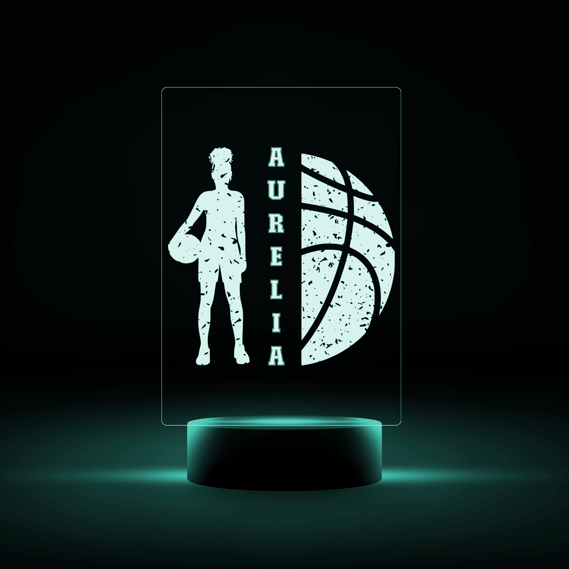 Basketball night light personalised with any name. Female basketball player.