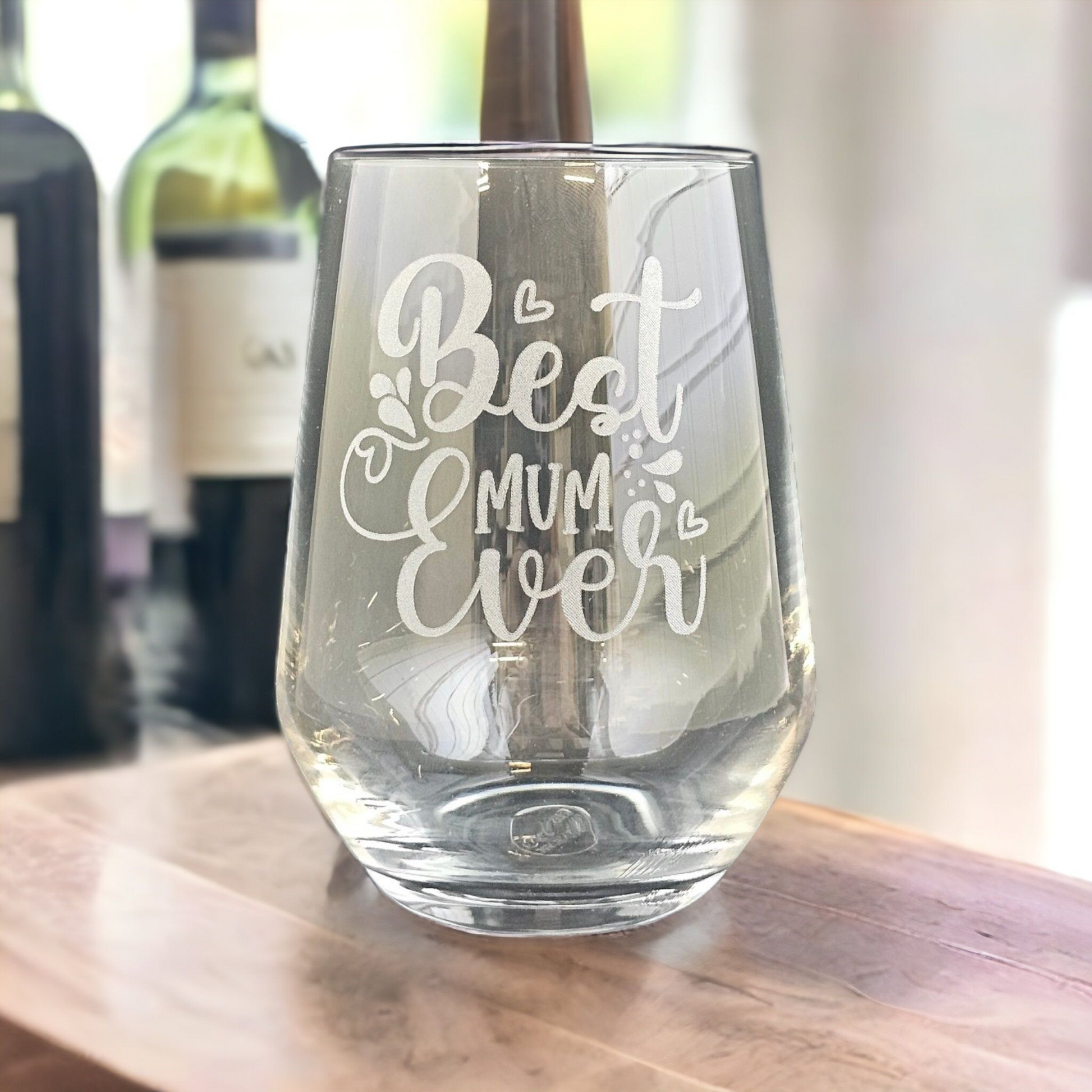 Best Mum Ever - Laser Engraved Stemless Wine Glass with Gift Box