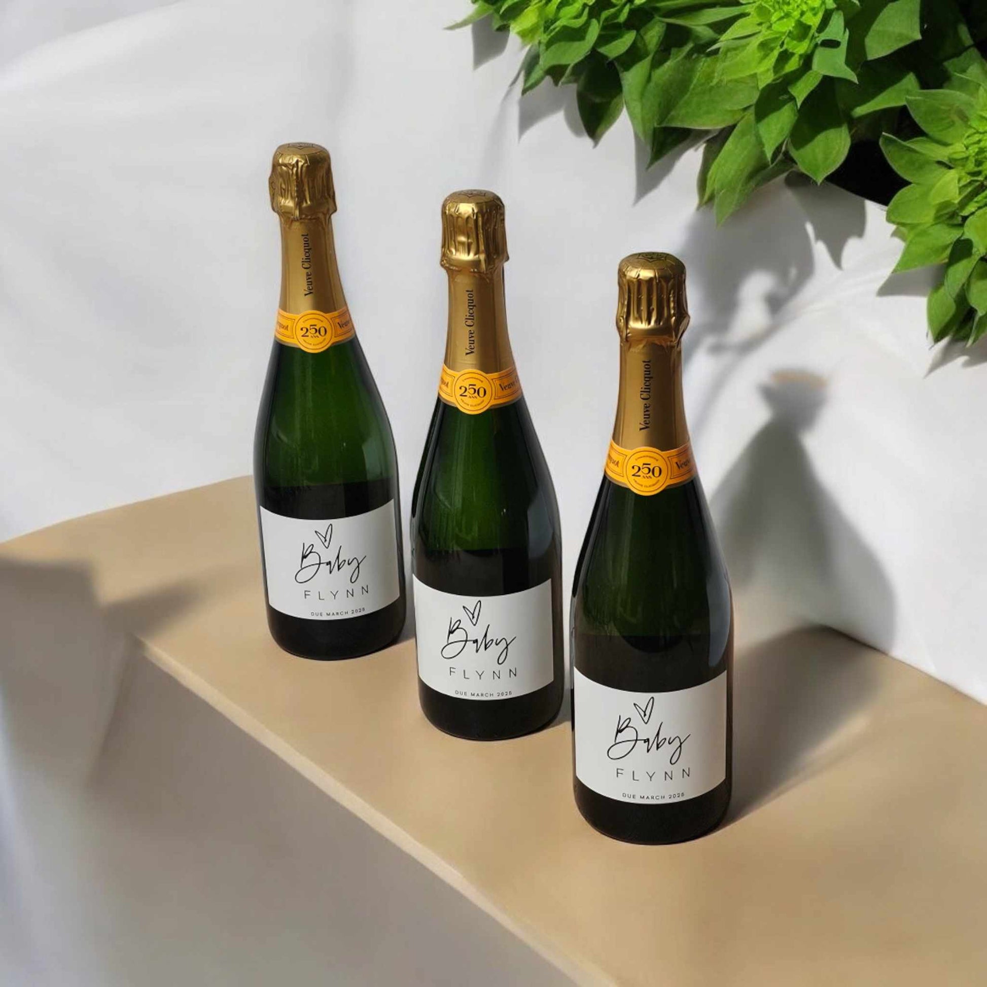 - Most full size champagne bottles will suit the 120 mm (w) x 70mm (h) size. This size suits a Veuve Clicquot Bottle of Champagne.