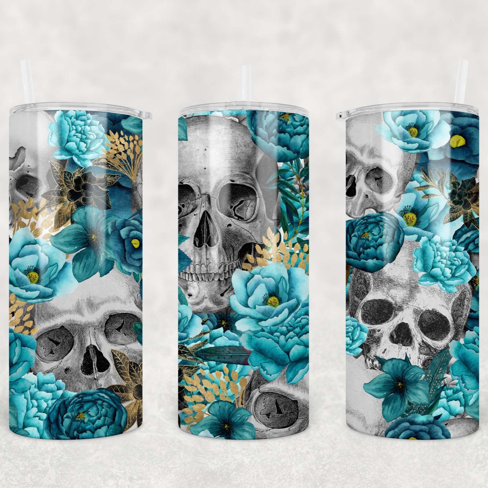 Floral Skull Blue Teal Tumbler 15oz (443mls)
