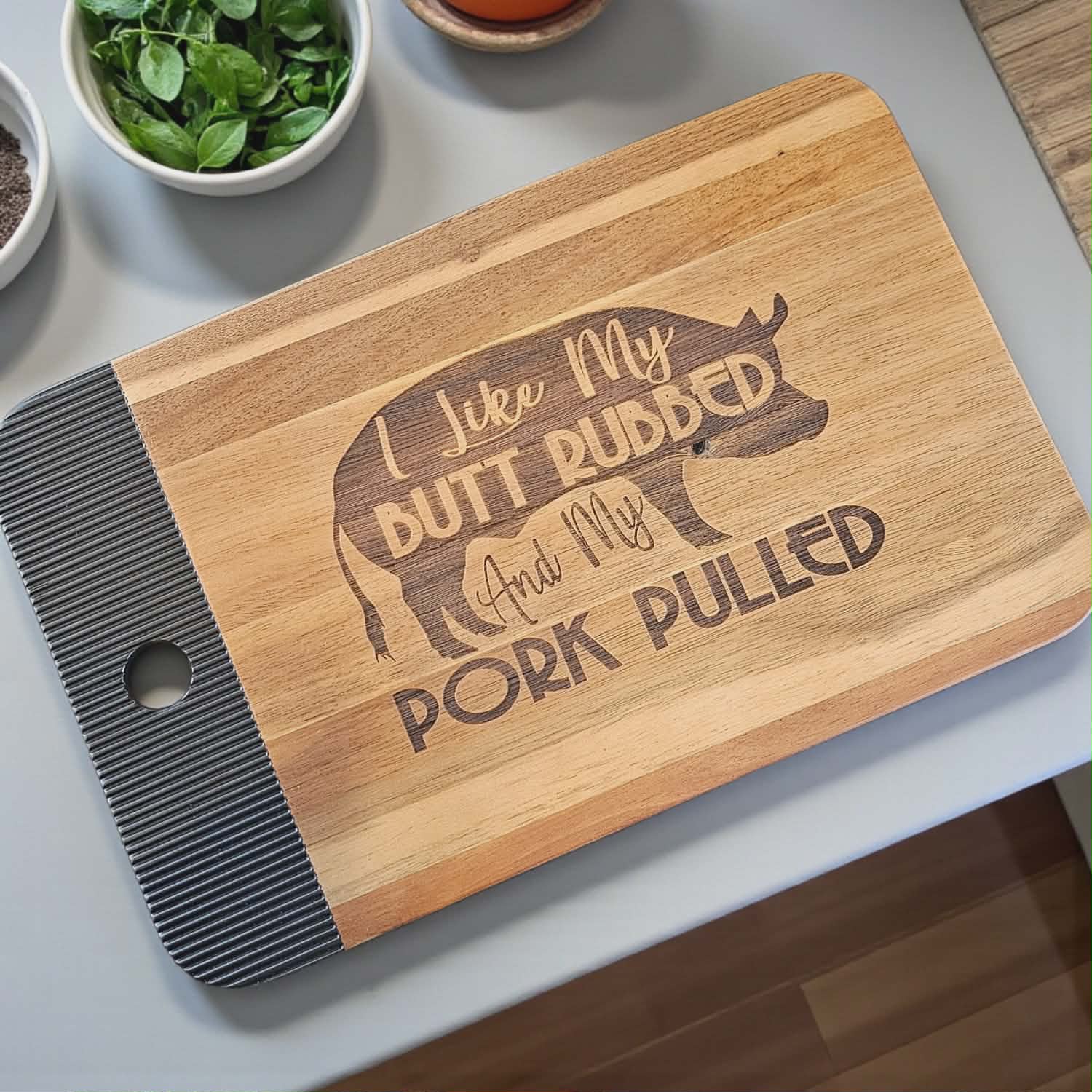 "I Like My Butt Rubbed and my Pork Pulled" Engraved Acacia Serving Board