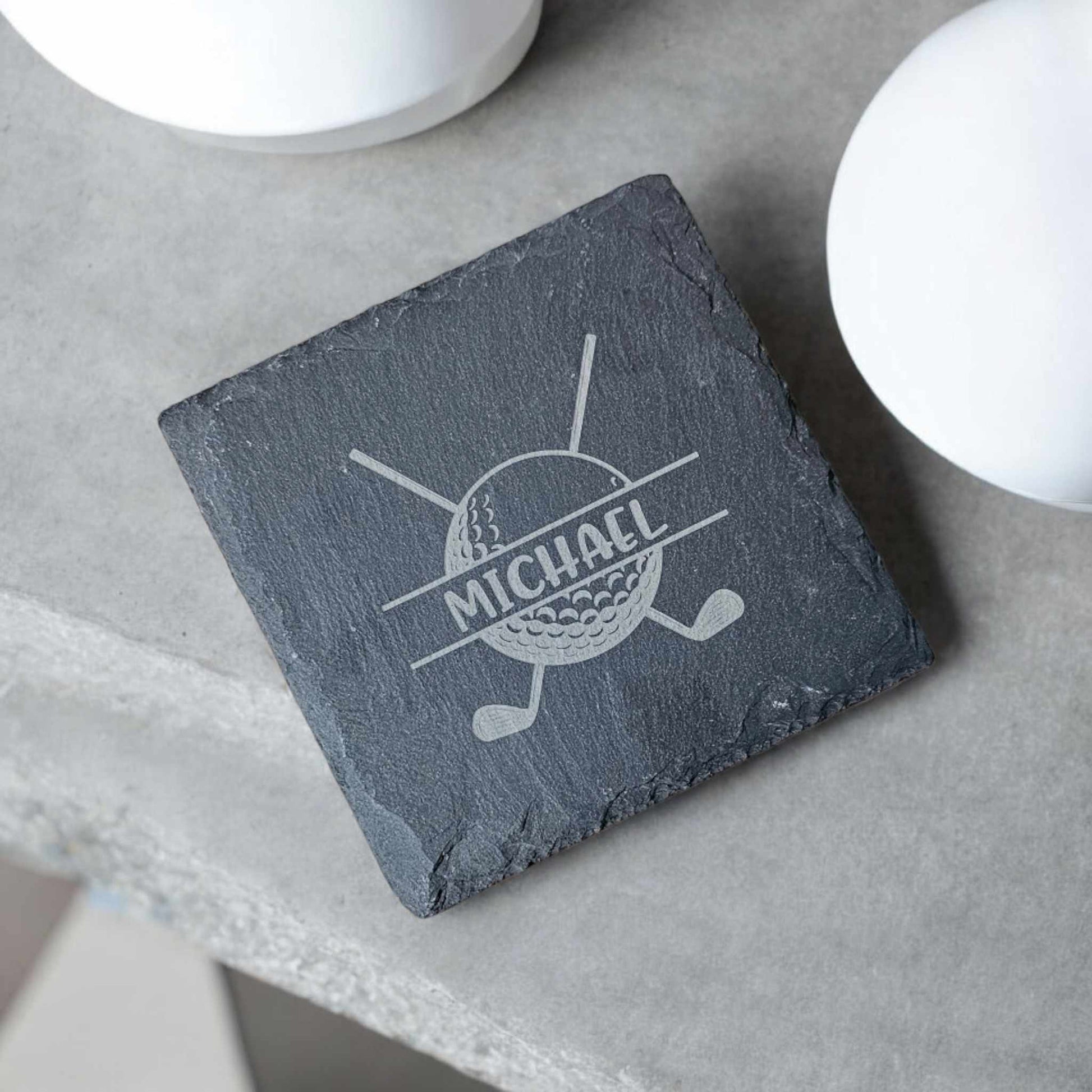 Add a touch of personality and style to your home or gift with our Personalised Slate Coasters. Perfectly sized at 100mm x 100mm, these premium slate coasters are engraved with the recipient's name and customised with a golf themed image.