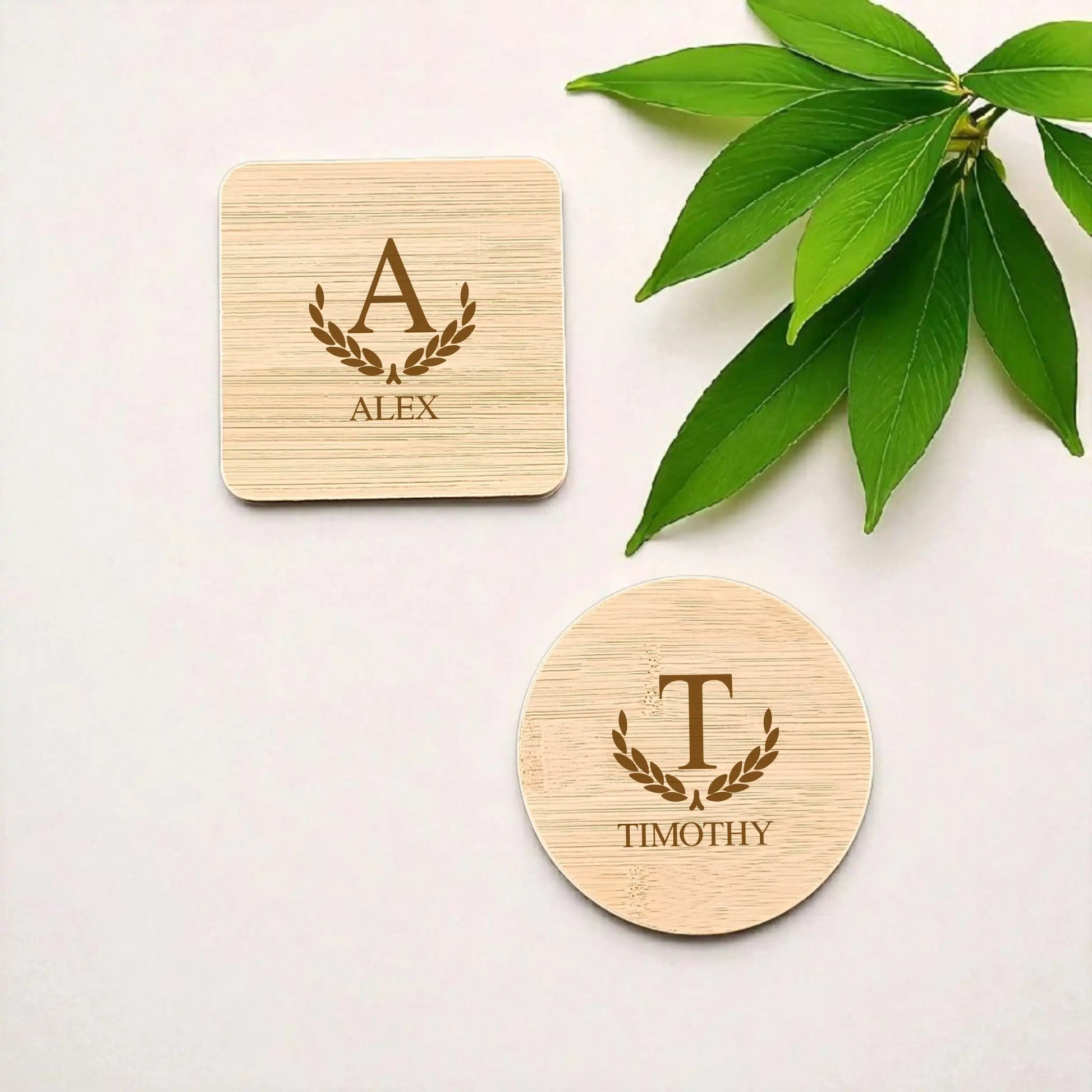 Stylish, practical, and personalised just for them — this engraved bamboo coaster combines timeless style with clever functionality. Featuring a beautifully engraved laurel wreath monogram and custom name, it’s a classy addition to any home or office.