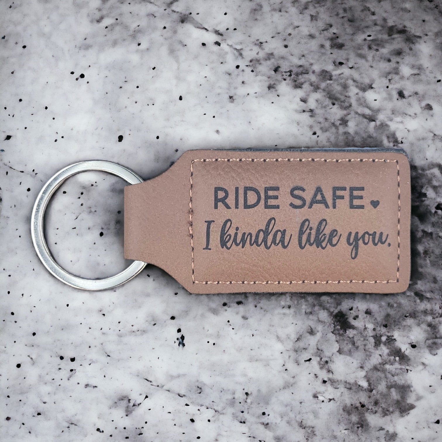 "Ride Safe, I Kinda Like You" or "Drive Safe, I Kinda Like You" Key Ring