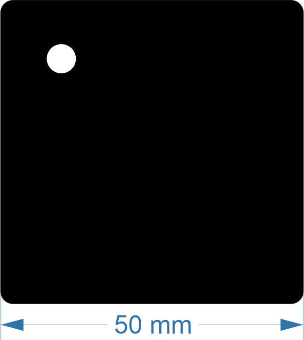 5cm x 5cm / 50mm x 50mm / 1.9" x 1.9". Other sizes available upon request.