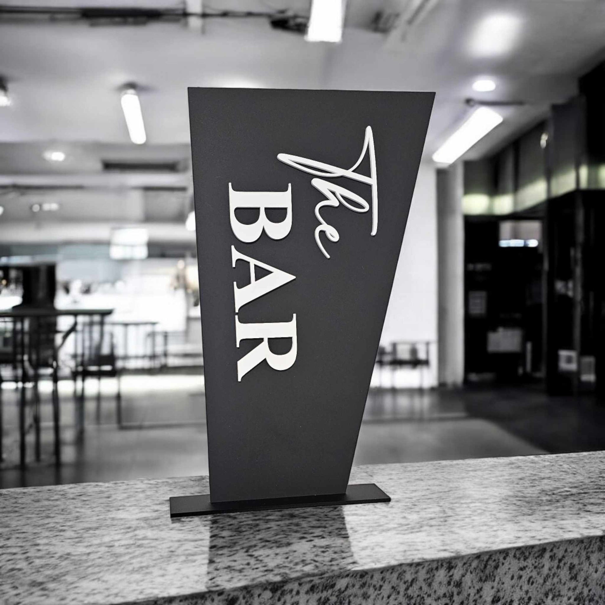 Dual layered so the "The Bar" text sits 3D off the black backing. Simple but oh so classy!